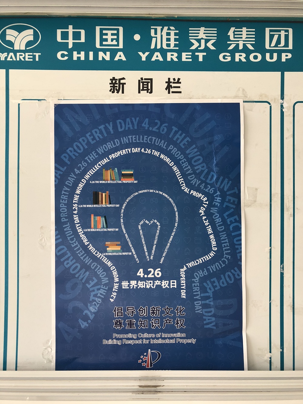 近日,在第18個世界知識產權日到來之際,雅泰集團通過發(fā)放相關宣傳資料、懸掛橫幅、張貼海報等方式順利開展知識產權宣傳系列活動,旨在加強知識產權宣傳普及,優(yōu)化知識產權保護氛圍,推進企業(yè)技術創(chuàng)新。作為一家專注于自主研發(fā)、生產、銷售的現(xiàn)代化企業(yè),集團不斷開發(fā)適應市場和客戶的新產品,重視知識產權保護,并以“倡導創(chuàng)新文化,尊重知識產權”為主題,結合企業(yè)發(fā)展現(xiàn)狀,多次組織員工參加知識產權保護宣傳培訓活動,鼓勵員工在知法守法的前提下大力創(chuàng)新,提高自主開發(fā)能力,助推企業(yè)加速發(fā)展。