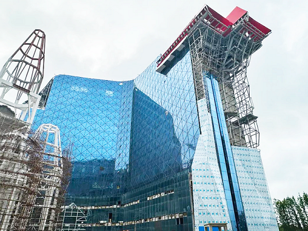 雅泰集團(tuán)承建上海臨港冰雪北區(qū)幕墻整體制作及建設(shè),本項(xiàng)目為菠蘿面異形設(shè)計(jì),充滿現(xiàn)代感的外立面,把冰雪世界的晶瑩閃耀充分展現(xiàn)。與之相匹配的鋁幕墻板的結(jié)構(gòu)復(fù)雜,加工難度較大,全異型、超大、超寬、超長(zhǎng)鋁板,多數(shù)板長(zhǎng)6-7米,且角度尖銳精度要求非常嚴(yán)格。面對(duì)高難度重點(diǎn)工程,雅泰集團(tuán)快速成立項(xiàng)目攻艱突擊隊(duì),選調(diào)管理、設(shè)計(jì)、加工精英,結(jié)合理解冰雪項(xiàng)目設(shè)計(jì)特點(diǎn),最大程度達(dá)成設(shè)計(jì)師初衷。加工團(tuán)隊(duì)對(duì)異型板件進(jìn)行優(yōu)化拆解,分件加工,再進(jìn)行一體化工廠組裝集成。同時(shí)集團(tuán)擁有行業(yè)內(nèi)體量、規(guī)模均在前列,全長(zhǎng)700米的進(jìn)口先進(jìn)噴涂設(shè)備,充分滿足超大、超長(zhǎng)、超寬鋁板的氟碳漆面噴涂完成。