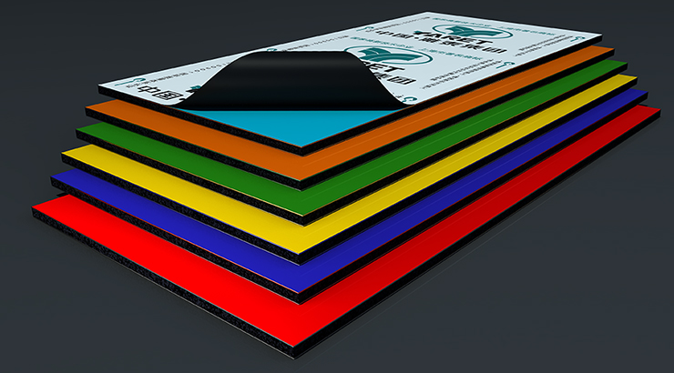 鋁塑板上下層為高強度涂裝鋁箔,中間層為無毒防火高密度聚乙烯( PE )芯板,粘結(jié)層為高分子粘結(jié)膜。室外用鋁塑板,上層鋁箔涂覆氟碳樹脂涂層;室內(nèi)用鋁塑板,可采用聚酯樹脂涂層和丙烯酸樹脂涂層,亦能滿足其使用要求。