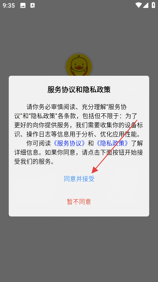 1、閱讀服務(wù)協(xié)議和隱私政策后,點(diǎn)擊【同意并接受】,進(jìn)入平臺。