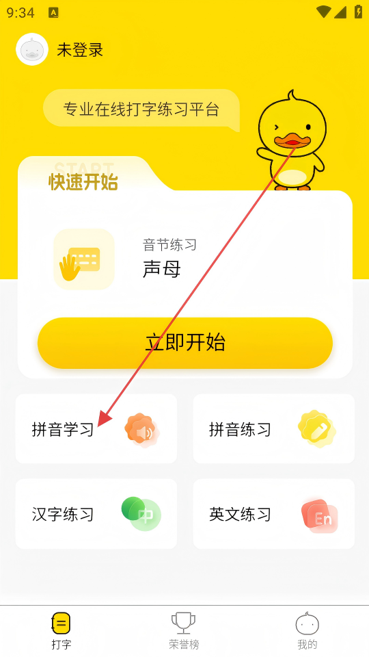 2、在主界面點(diǎn)擊【拼音學(xué)習(xí)】,進(jìn)入拼音學(xué)習(xí)模塊開啟學(xué)習(xí)。