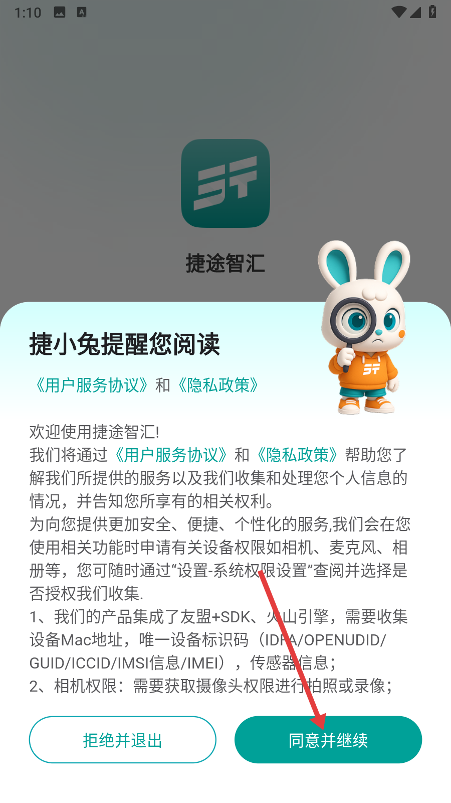 1、閱讀【用戶服務(wù)協(xié)議】和【隱私政策】后,點擊【同意并繼續(xù)】。