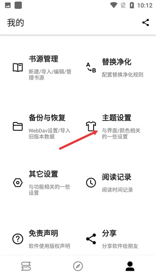 2、在【我的】頁(yè)面,找到并點(diǎn)擊【主題設(shè)置】選項(xiàng),進(jìn)入主題相關(guān)的配置界面,可調(diào)整界面風(fēng)格。