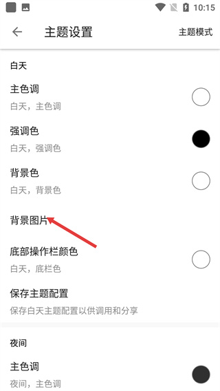 3、進(jìn)入主題設(shè)置頁(yè)面后,點(diǎn)擊【背景圖片】選項(xiàng),進(jìn)入背景圖片的選擇界面,準(zhǔn)備更換主題背景。