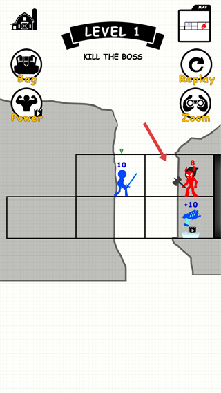 1、明確擊敗首領(lǐng)的目標(biāo),觀察角色初始數(shù)值,操控角色移動,靠近首個(gè)敵方單位,準(zhǔn)備發(fā)起攻擊來提升自身力量。
