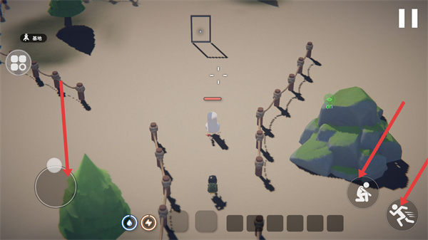 2、游戲場景中左側虛擬搖桿控制角色移動,右側包含互動奔跑等功能按鈕,需操控角色在圍欄區(qū)域內(nèi)移動靠近目標點推進游戲流程。