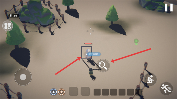 3、靠近目標區(qū)域后界面會出現(xiàn)交互提示,點擊放大鏡按鈕可觸發(fā)互動推進劇情或解鎖新內(nèi)容,需留意場景中的交互標識及時觸發(fā)對應操作以繼續(xù)游戲。