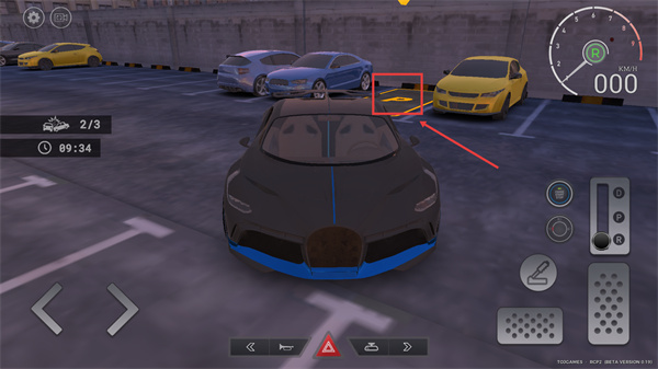 2、停車任務(wù)中,黃色標(biāo)線區(qū)域是目標(biāo)車位,需操控車輛精準(zhǔn)駛?cè)朐搮^(qū)域,完成停靠以推進(jìn)任務(wù)進(jìn)度。
