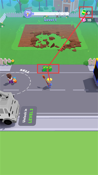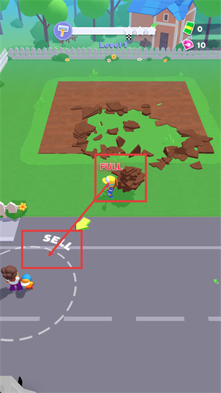 3、當(dāng)出現(xiàn)【FULL】提示時(shí),將裝滿的泥土運(yùn)送至【SELL】區(qū)域兌換資源,完成資源轉(zhuǎn)化以支持后續(xù)清理操作。