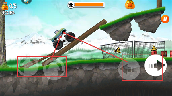 2、操控界面的方向鍵與加速鍵,控制賽車通過斜坡等地形,注意避開障礙推進(jìn)關(guān)卡。