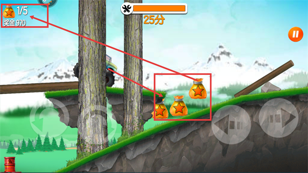 3、收集場(chǎng)景中的【星星道具】,可提升【1/5-獎(jiǎng)金】數(shù)值與得分,助力關(guān)卡評(píng)級(jí)提升。
