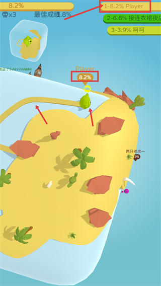 1、對戰(zhàn)節(jié)奏明快緊湊,玩家需快速出擊搶占先機,以高效策略擴張領地范圍,憑借靈活操作在短時間內圈占更多區(qū)域。