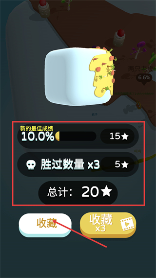 4、關卡結束后達成【10.0%-新的最佳成績】,獲得【20-星級】獎勵,點擊收藏領取獎勵。
