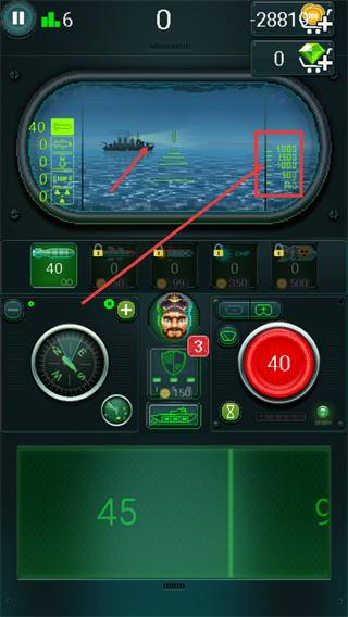 2、進(jìn)入關(guān)卡后,瞄準(zhǔn)敵方艦船,根據(jù)右側(cè)刻度調(diào)整發(fā)射參數(shù),點(diǎn)擊【40-彈藥按鈕】發(fā)起攻擊。