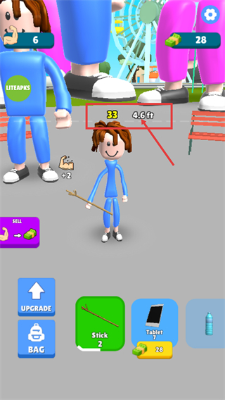 2、角色成長后身高變?yōu)椤?.6ft】,裝備【Stick-2】道具可提升屬性,助力后續(xù)成長進(jìn)度推進(jìn)。