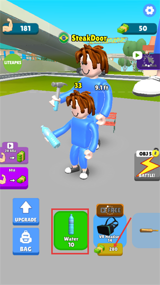 4、角色身高達(dá)到【9.1ft】,裝備【W(wǎng)ater-10】道具繼續(xù)提升屬性,后續(xù)可通過更多道具強(qiáng)化角色。