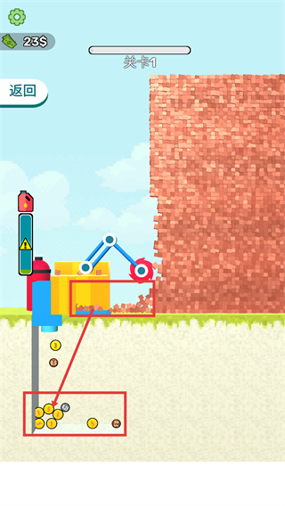 2、切割墻體產(chǎn)生碎片后,會(huì)掉落【1】【5】等數(shù)值的貨幣,收集這些貨幣可積累至【23$】用于升級(jí)。